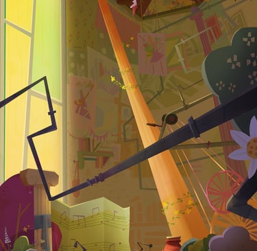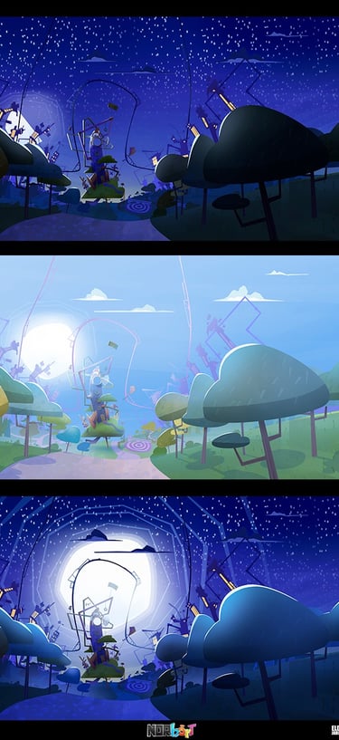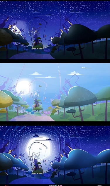 In an animated film, Art's job is to design the maps of how everything should look, where everything should be, how everything should work, so that the rest of the production can build and execute to make it happen.